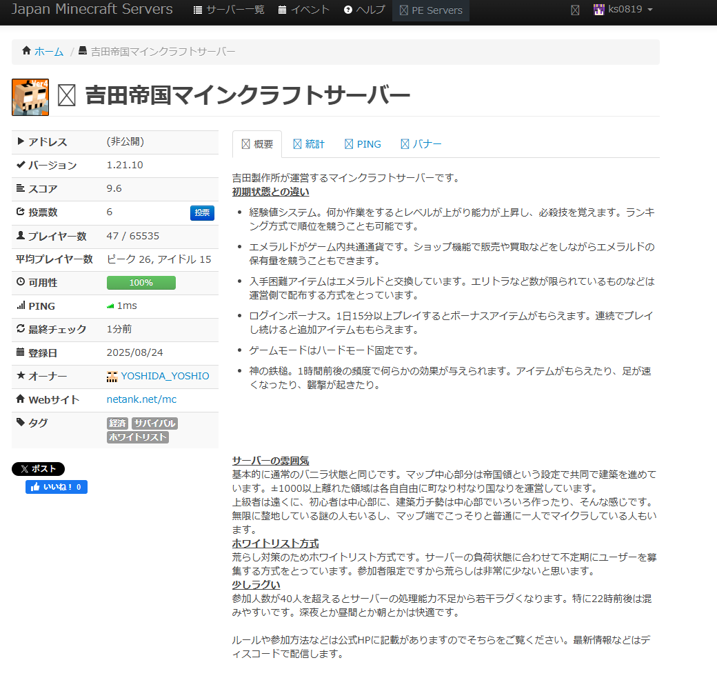 吉田帝国サーバーはJMSに登録されています